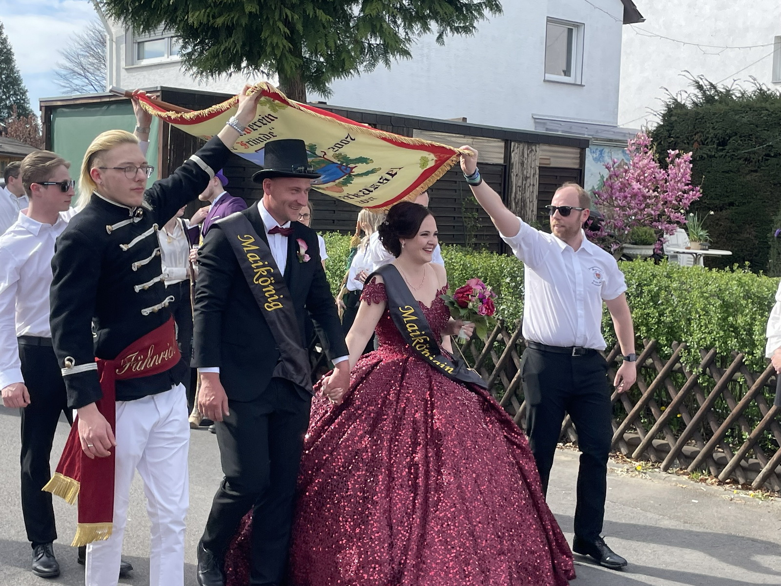 Traditionelles "Maianschwenken"; Treffpunkt am Maibaum. Der JGV holt sein Maikönigspaar ab und stellt es anschließend den Gastronomen vor. Anschließend lädt das Maipaar zu einem Umtrunk ein.